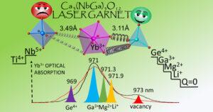 The cationic charge increase on the tetrahedral garnet site shifts the ytterbium level energy towards higher values.