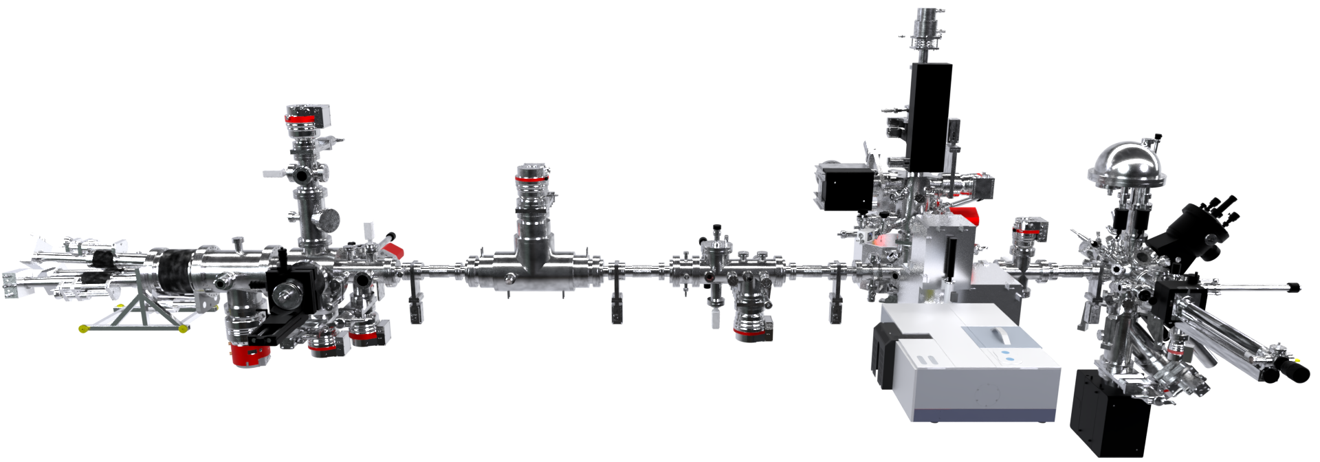 It is a world-unique modular ultra-high vacuum experimental station devoted to the fabrication, processing, and characterization of highly controlled nanoparticles with high yield. These nanoparticles are produced in the gas phase with high purity, controlled size, and stoichiometry, and can be collected in the desired amount (thickness <500 nm) on arbitrary surfaces for multiple uses.